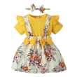 الحجلة بنات القطن طباعة الأزهار Onesie وتنورة مجموعة مع عقال في اللون الأصفر