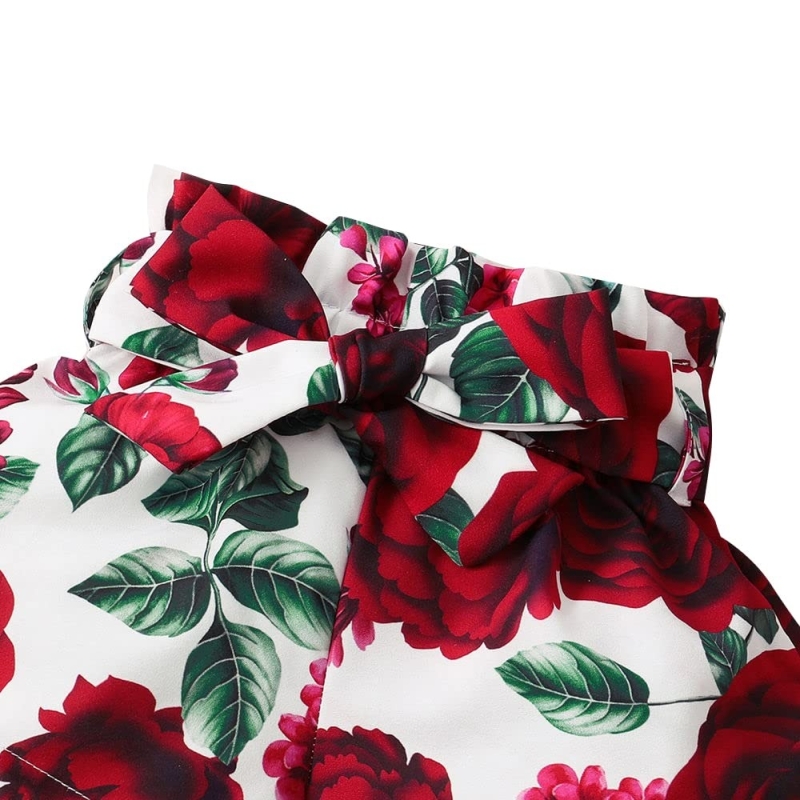 بلوزة بنات الحجلة ومجموعة قصيرة بطبعة الأزهار مع عقال من القطن والبوليستر باللون الأحمر