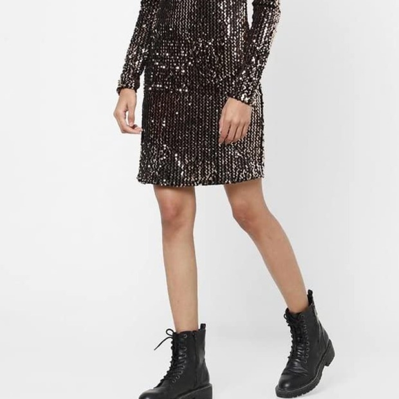 فستان نسائي دائري الرقبة من الترتر من الترتر فقط (AW21ON15244997B-P)