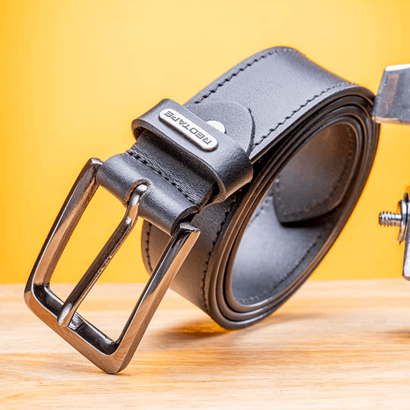 الشريط الأحمر الرجال حزام جلدي أسود