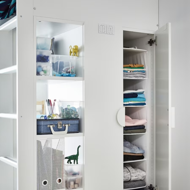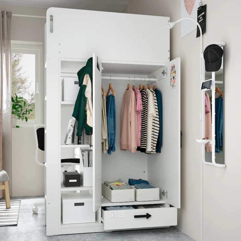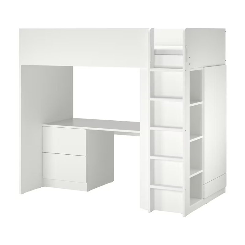 SMÅSTAD سرير علوي, أبيض أبيض/مع مكتب مع 3 أدراج,