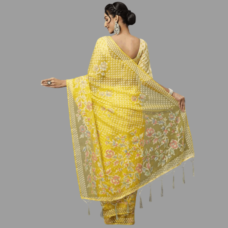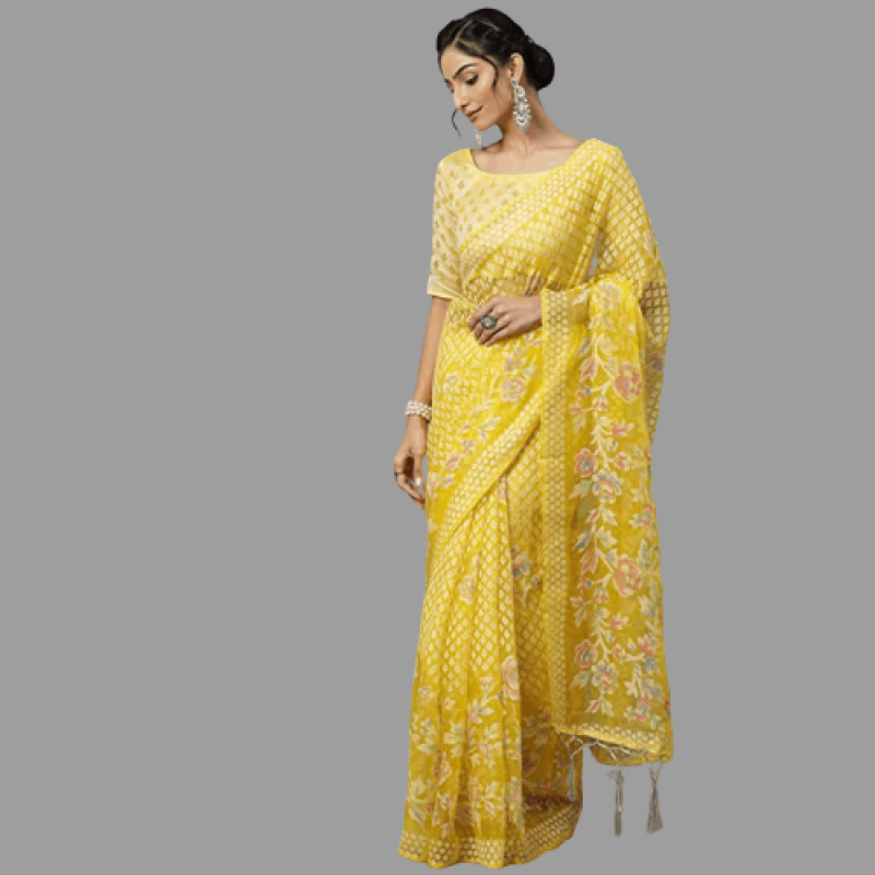 Akhilam Brasso Brasso Floral Impreso Chanderi Sari con pieza de blusa sin costura