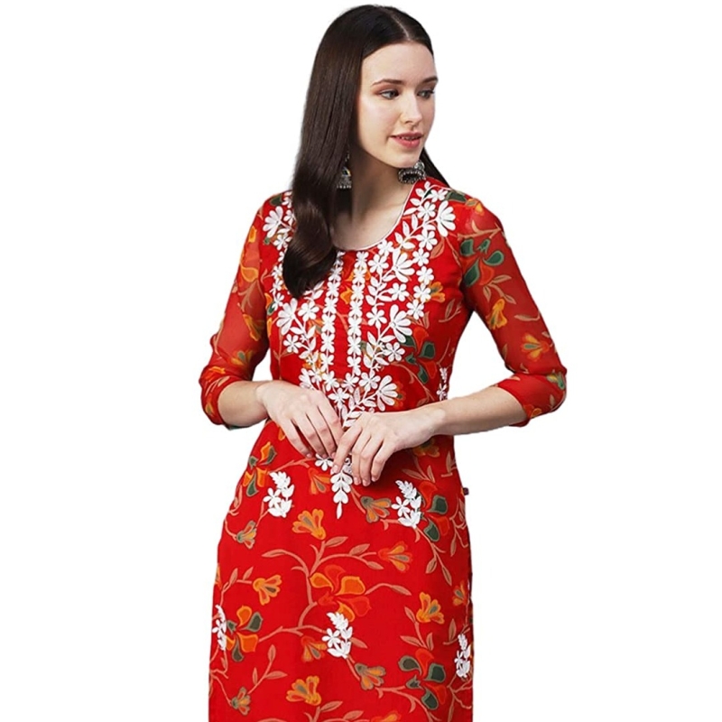 Anni Diseñador Impreso para mujeres Georgette Chikankari bordado Kurti