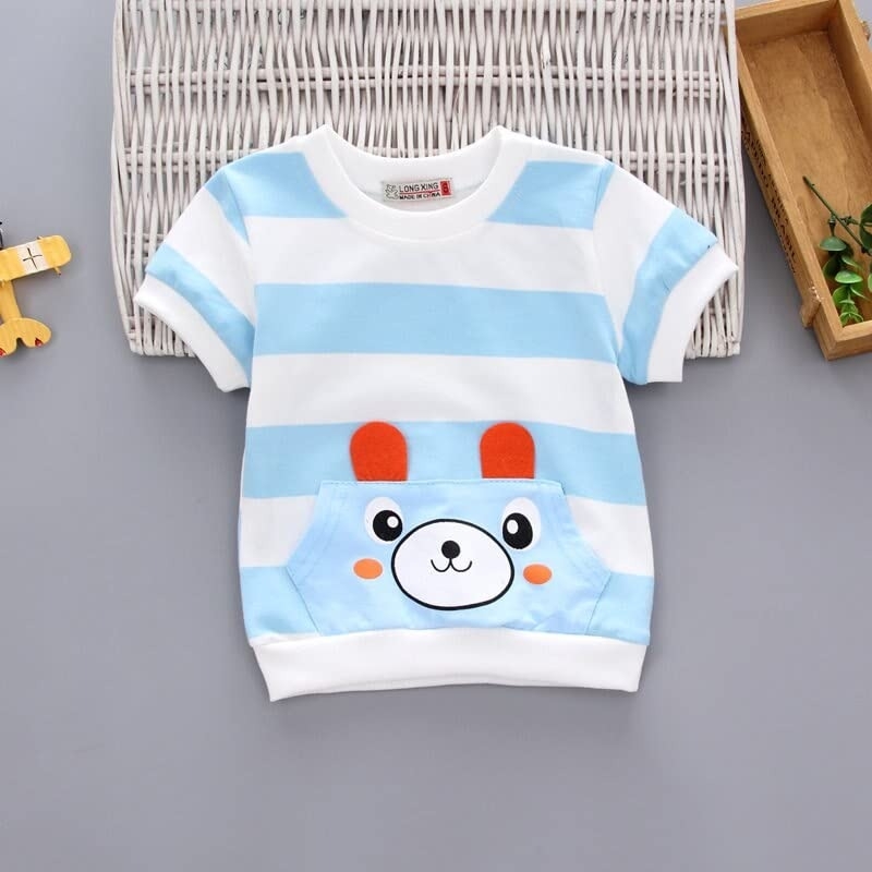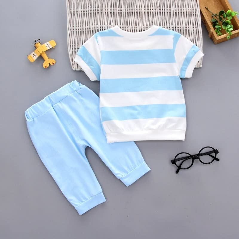 Bold n elegante niños Cartoon Stripe estampado de algodón Media manga y pantalones cortos