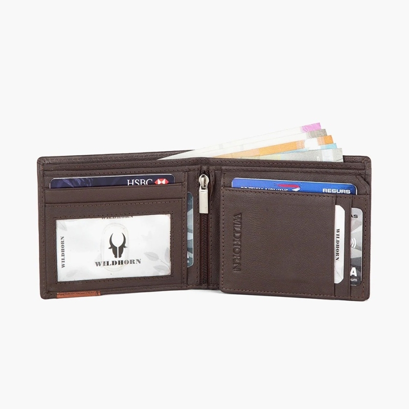 Men marrones sólidos sólidos rfid cuero protegido billetera de dos veces