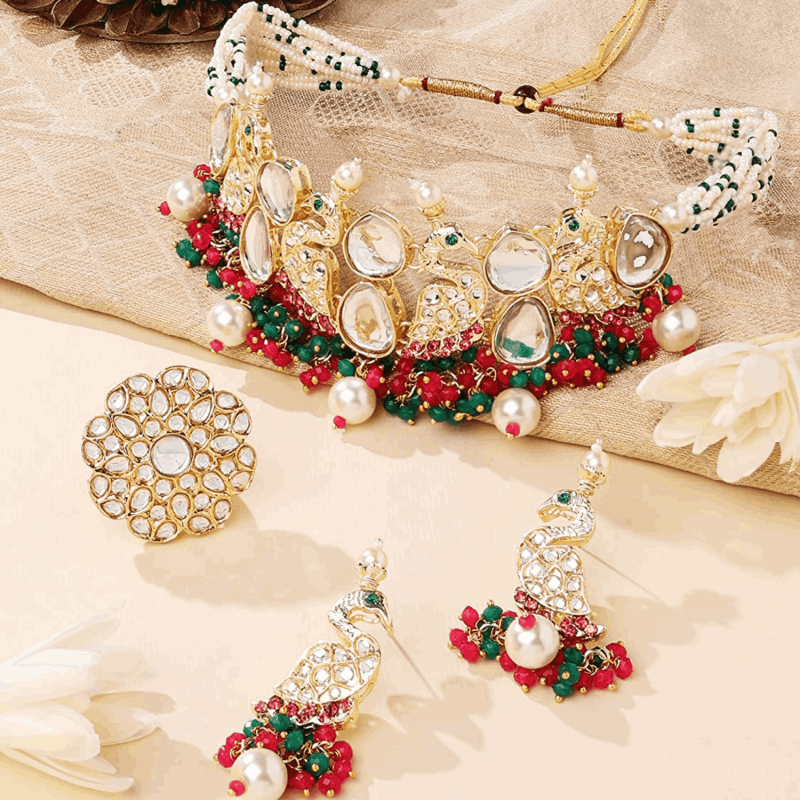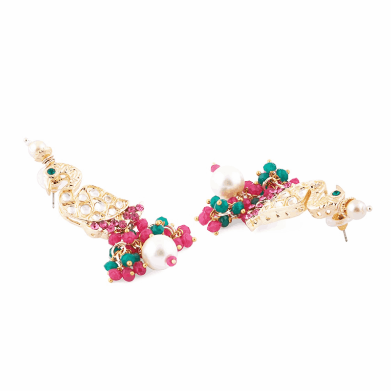 Rani Pink & Green Cluster Beads Kundan Peacock Inspirado Collar