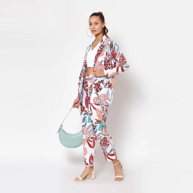 Mujeres estampado tropical blazer de un solo pecho
