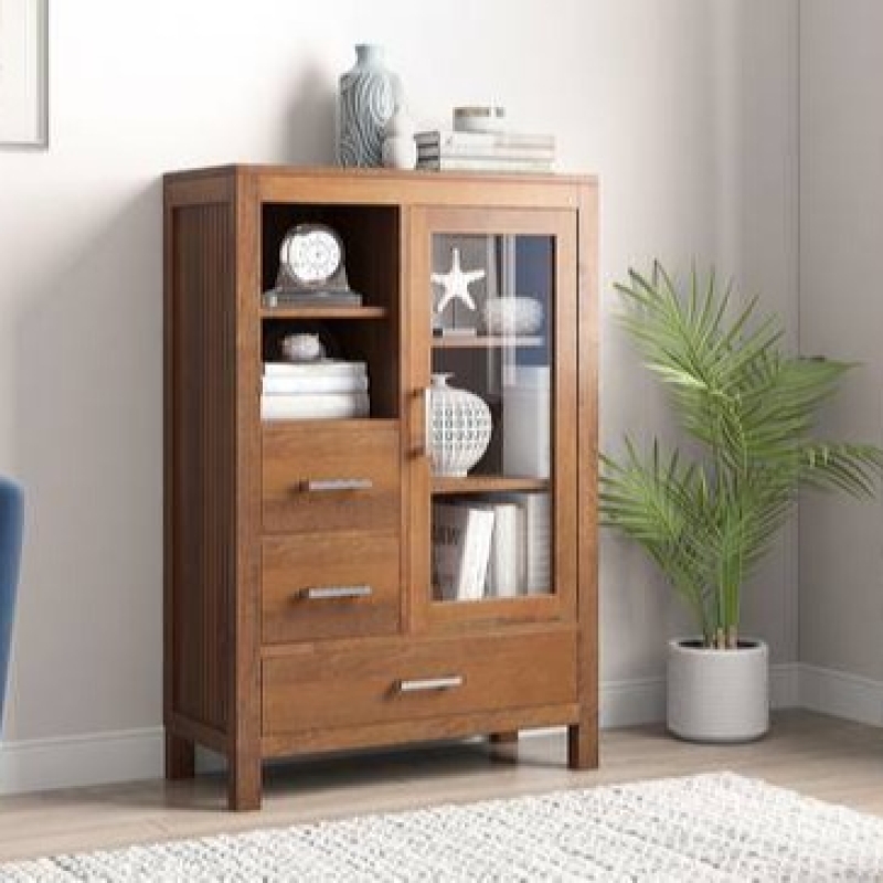 رف كتب من الخشب الصلب من كارنيجي باللون الكهرماني والجوز