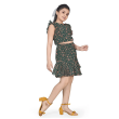 بلوزة جورجيت Pinafore Georgette الخضراء الداكنة للفتاة مع مجموعة ملابس تنورة غير متماثلة