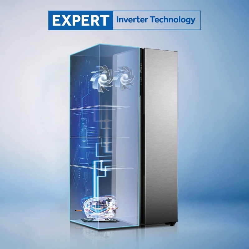 هاير 630 لتر ثلاجة ببابين متجاورين ، تقنية العاكس الخبير ، فولاذ لامع ، ماجيك قابل للتحويل