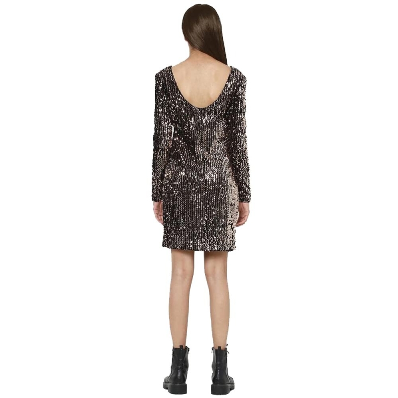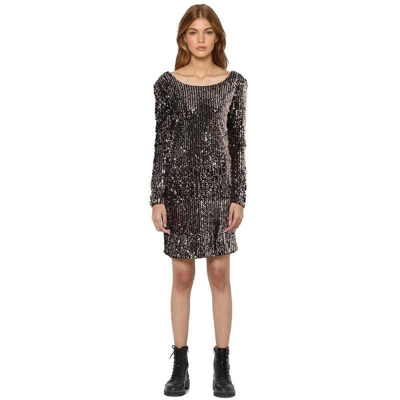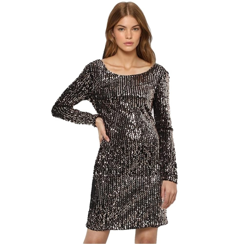 فستان نسائي دائري الرقبة من الترتر من الترتر فقط (AW21ON15244997B-P)