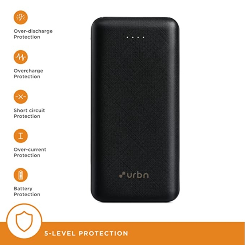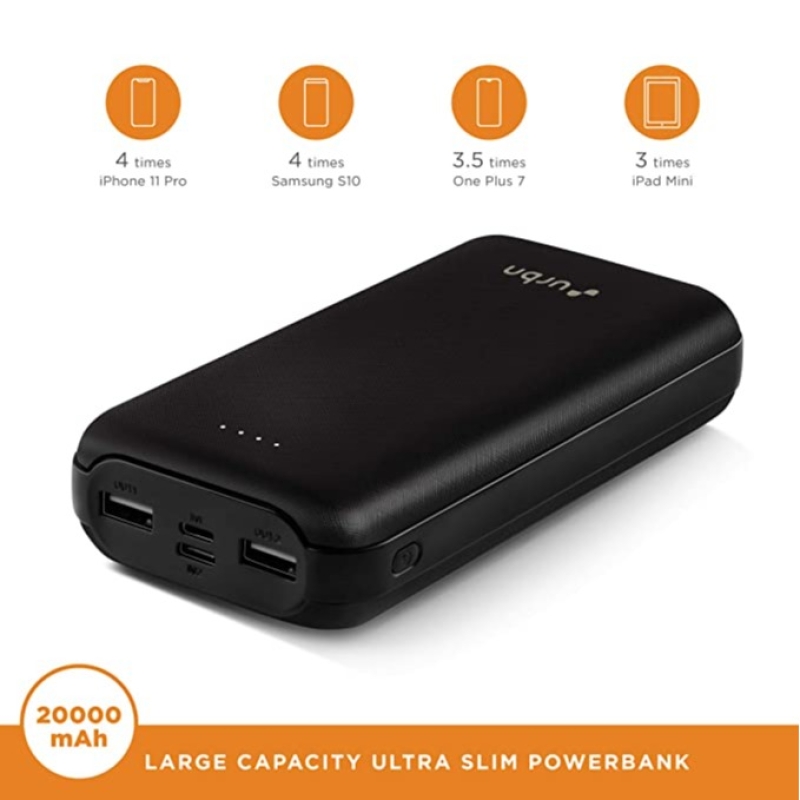 URBN 20000 مللي أمبير في الساعة بطارية احتياطية ليثيوم بوليمر UPR204 مع شحن سريع 12 وات (أسود)