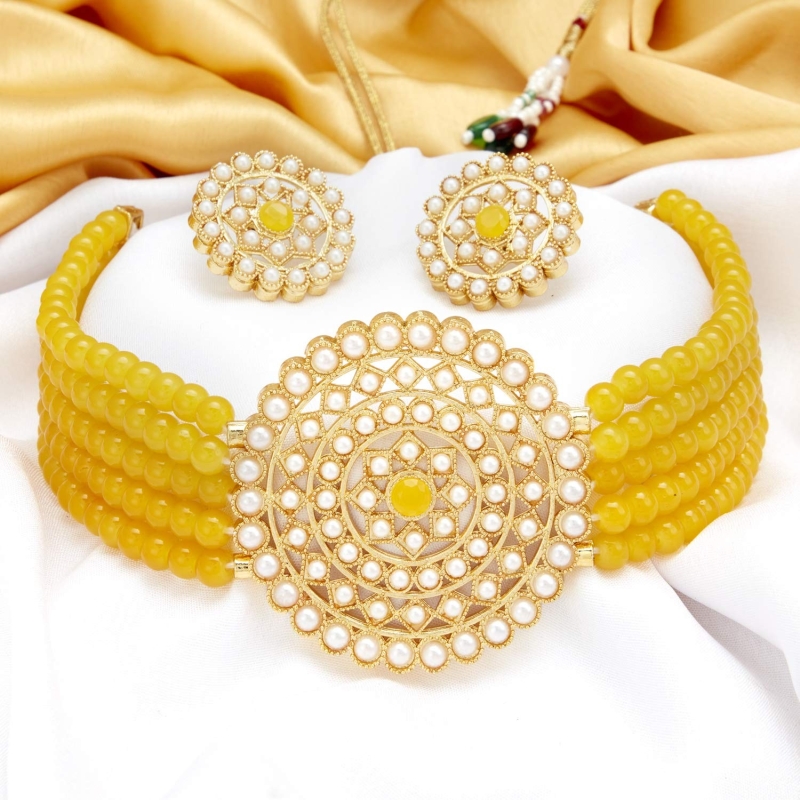 Adorable collar de gargantillas de perlas chapadas en oro para mujeres