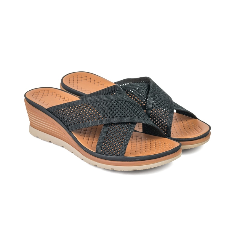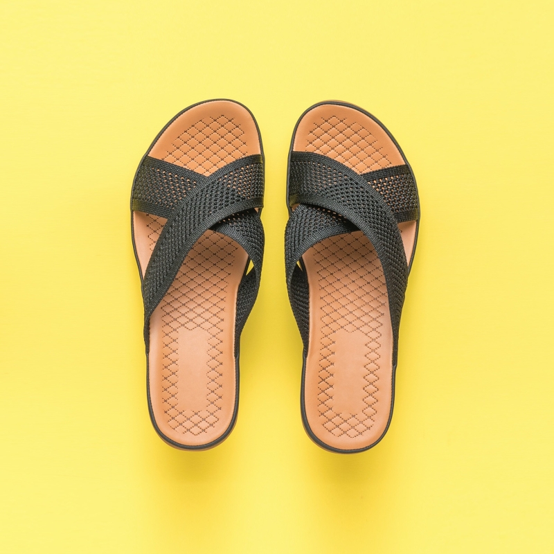 Flats de los pies abiertos negros y marrones