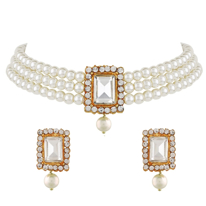 Gold Plated Latest Stylish Traditional Pearl Choker Necklace Jewellery Set for Women