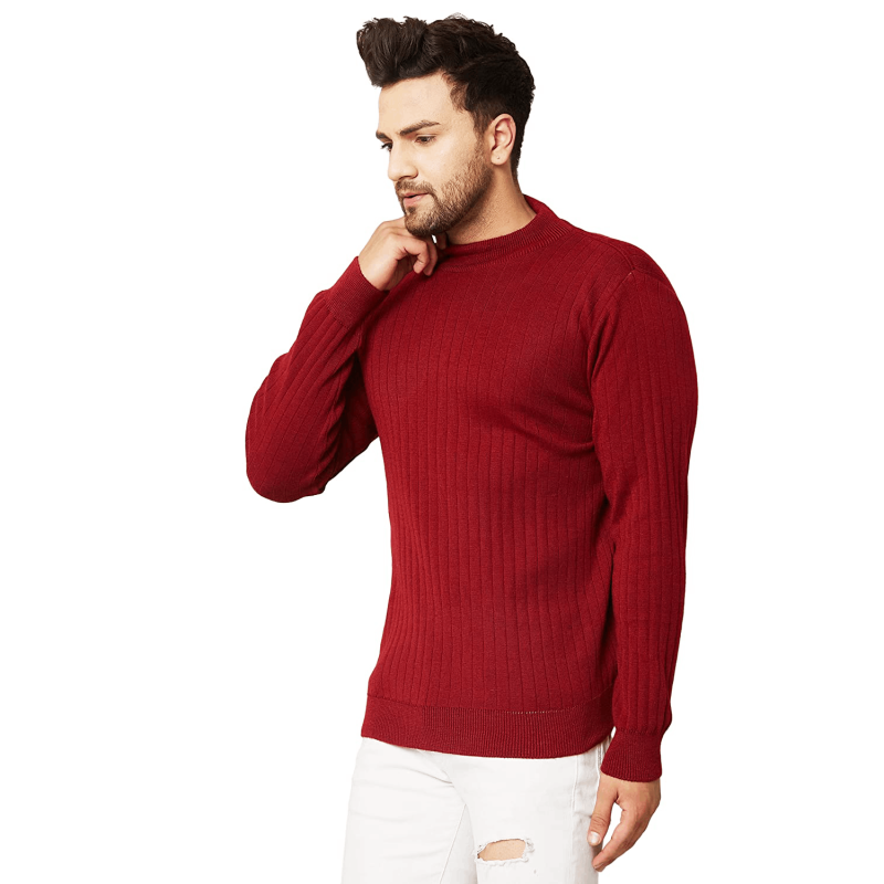 Men suéter de lana de invierno de manga completa para hombres, rojo