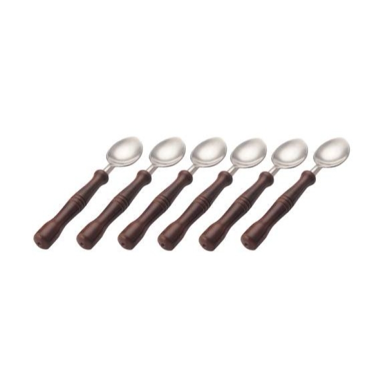 Amaran Wooden Handles Stainless Steel Dessert Spoons Set - Set Of 6