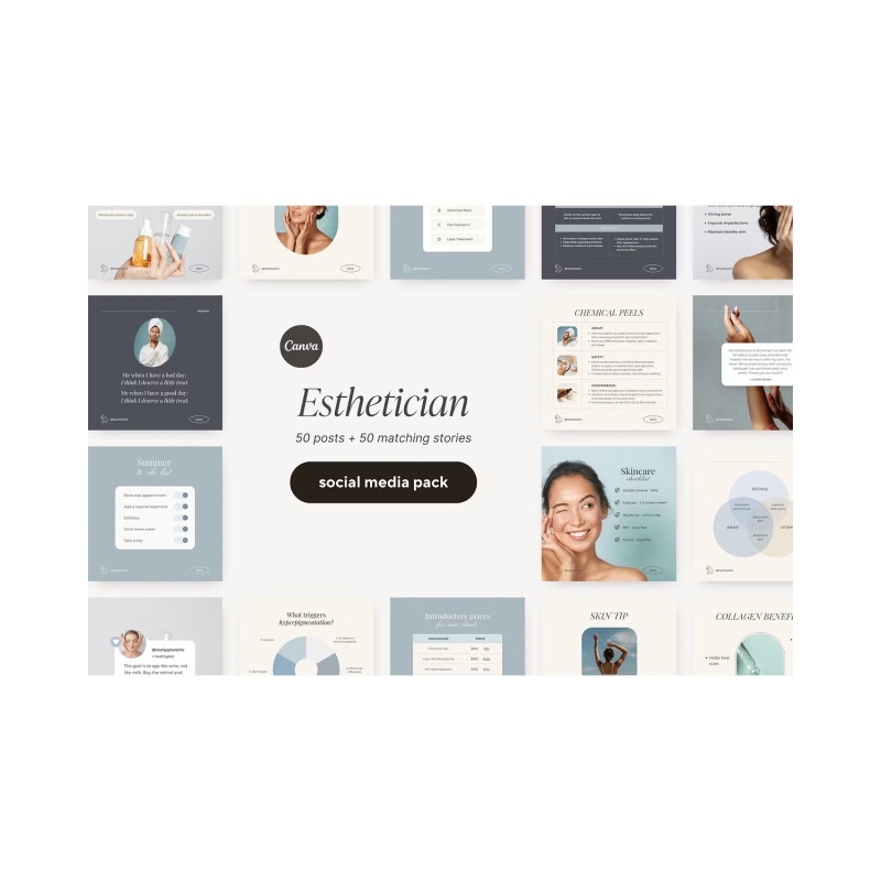 If you are an active Instagram user and want to take your game to the next level, have a look at these Canva Instagram templates for Estheticians and Beauty Business Owners! They will help you design a cohesive Instagram feed to bring in more followers.