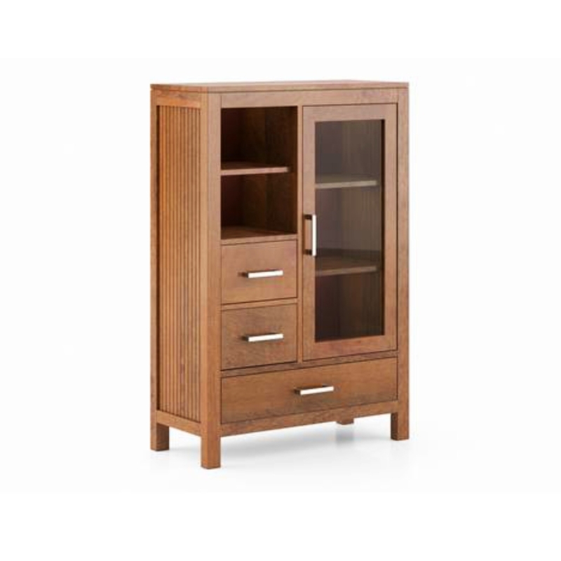 • Made of high quality Mango wood. Glass panel cabinet door. MDF panels used for the back and drawer bottoms.