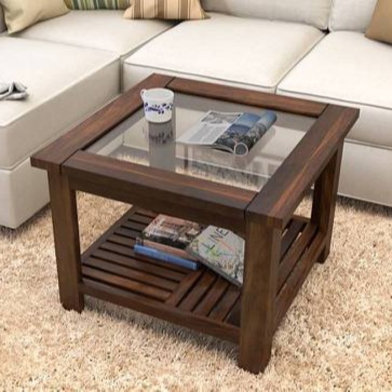 Claire Square Solid Wood Coffee Table In Teak Finish