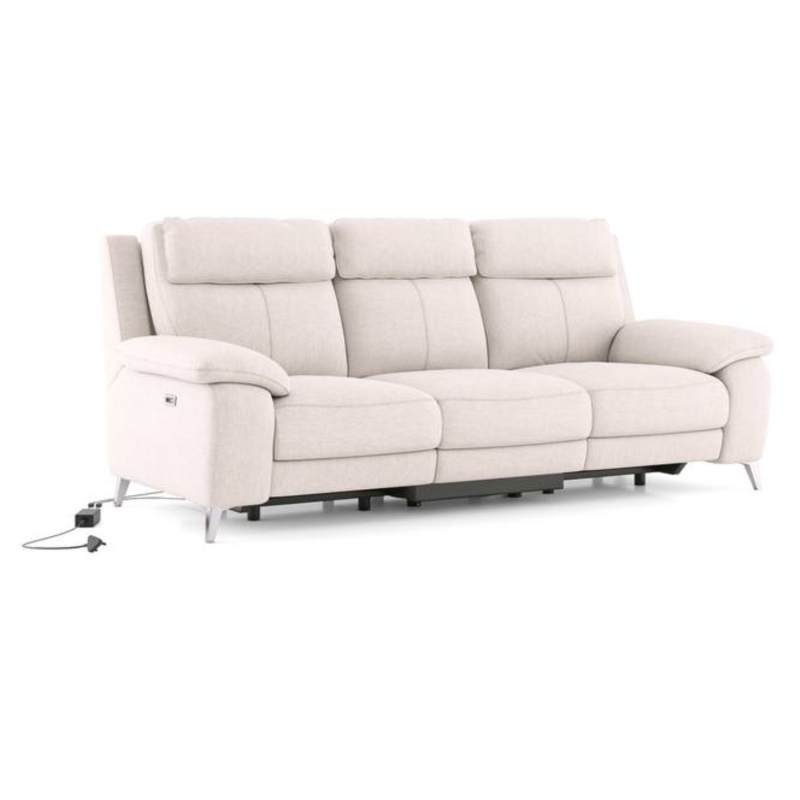 Emila Fabric Three Seater Motorized Recliner In Cream Colour
