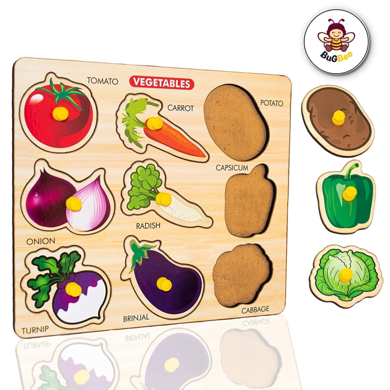 • peg puzzle With the easy-grasp wood pegs, kids can pick up the blocks easily.Base image design,baby can match it quickly by the picture and put it on the right place.
