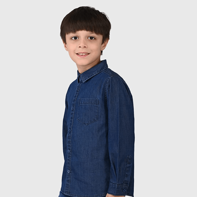 Junior Boys 100% Cotton Navy Blue Solid Regular Fit Full Sleeves Denim Shirt