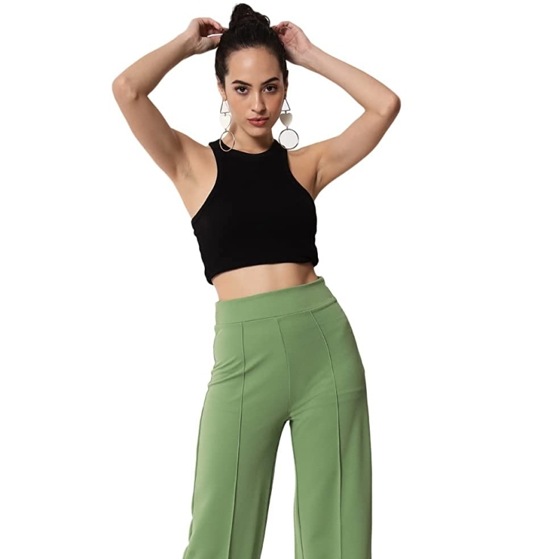 KOTTY Women Solid Polyester Blend Light Moss Green Trouser