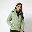 Jacket with faux fur trim, has a mock collar with hooded, 2 pockets ,has a snap button closure, sleeveless, straight hemline, polyester lining
