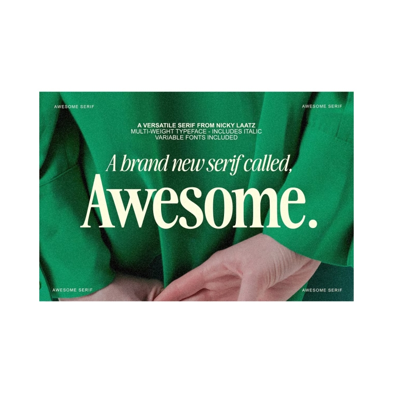 Awesome Serif is stylish, but with a retro edge. It's was created to be super versatile - it can morph into delicate sophisticated projects - or bold edgy retro designs. Take your pick :) Use the Type tester below to type out your text and take it for a spin!