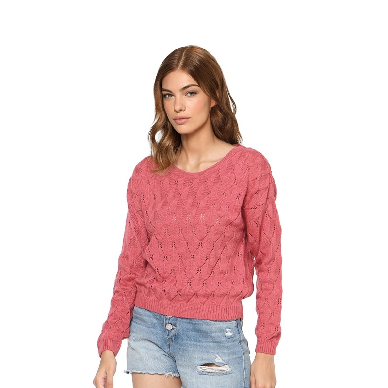 • Pink self design pullover ,has a round neck, na pockets, long sleeves, ribbed hem