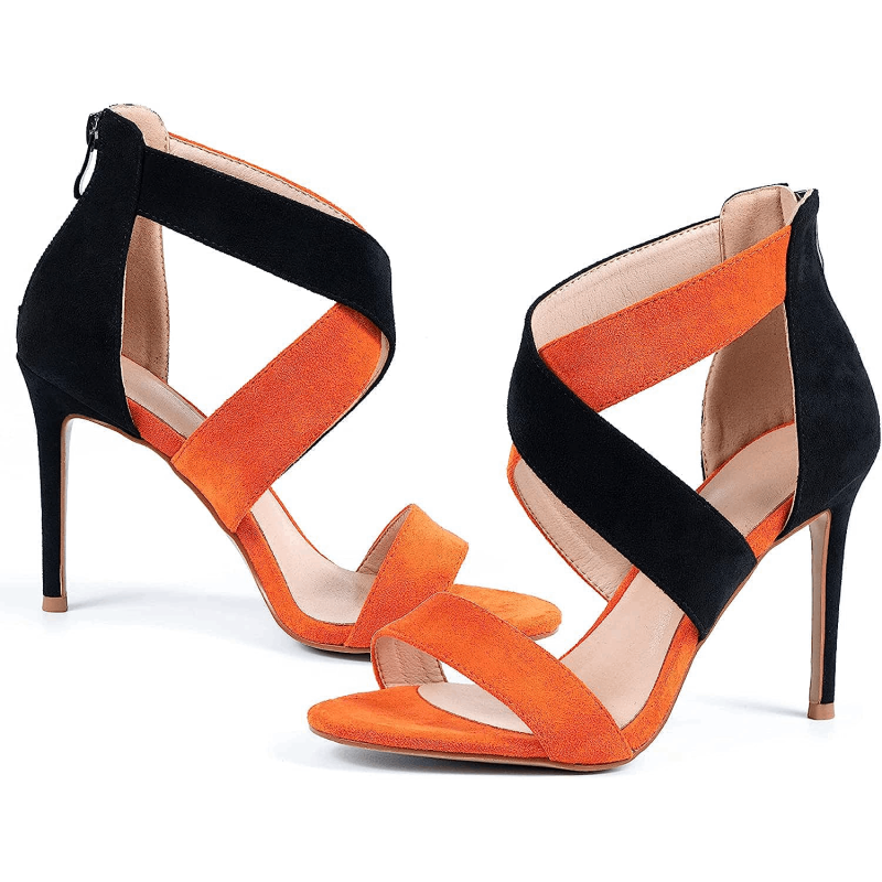 Womens Cutout Stiletto High Heels Ankle Strap Open Toe Stacked Heeled Sandal for Casual