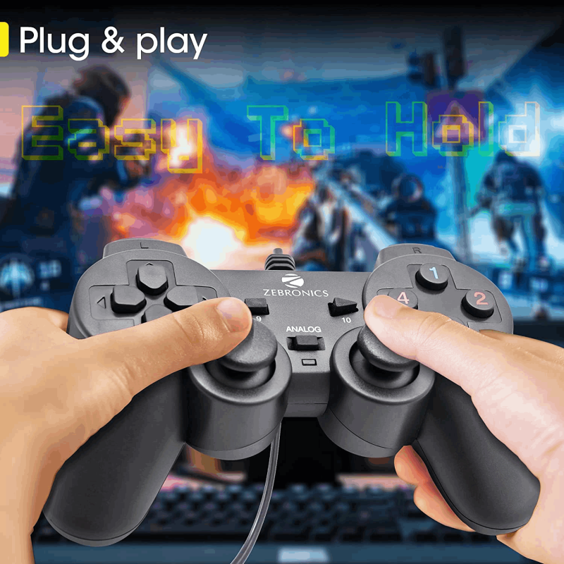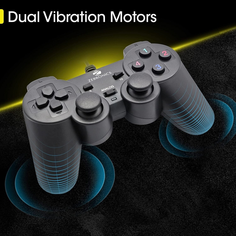 • Zebronics ZEB-V260JP USB Wired joypad with 1.5-meter cable.