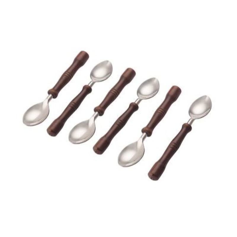 Amaran Wooden Handles Stainless Steel Dessert Spoons Set - Set Of 6
