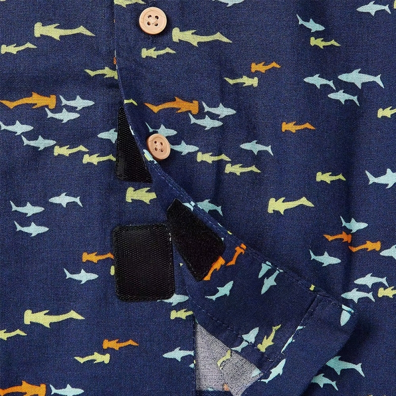 Available in five different colors and trendy floral, dino, shark prints, this half-sleeve shirt makes for a great pick be it playdate, special occasion, party or any outing.