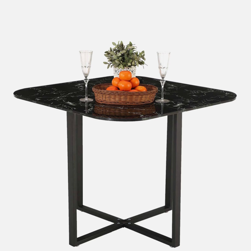 • Black leatherette chairs with white piping for stylish comfortable seating