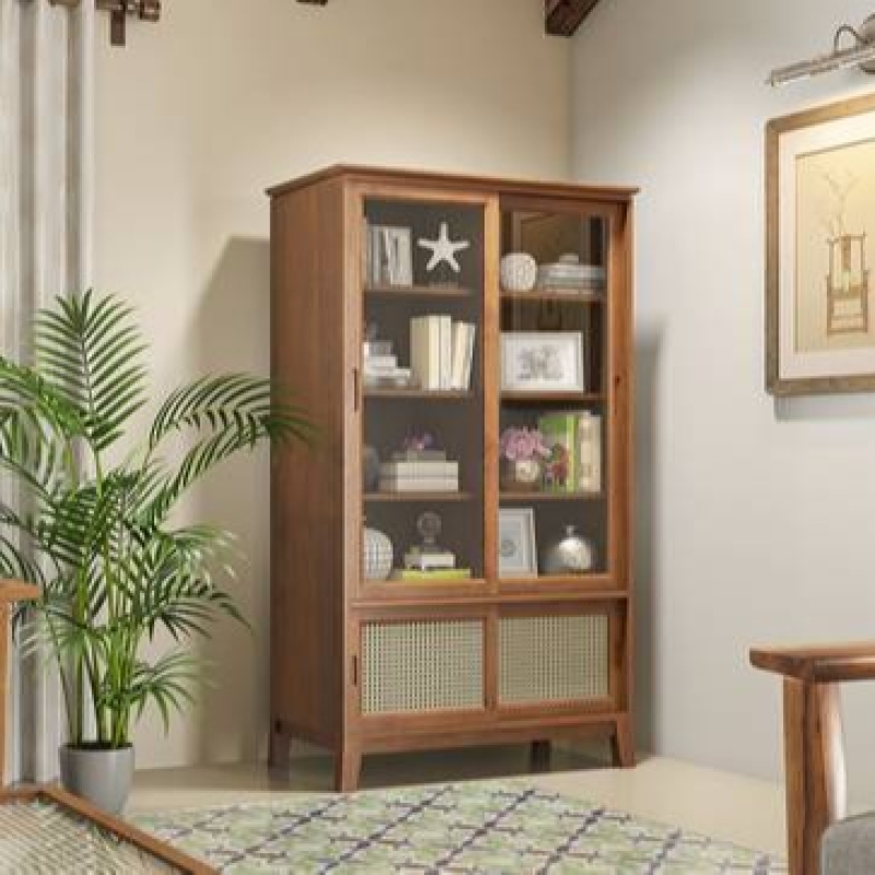 • Come home to Zen. The Fujiwara display cabinet is inspired by the Zen ideal of the middle way - rooted in Japanese design, but embellished with Indian touches. We borrowed the panel-like structure from the shoji screens of Japan, and made it our own by introducing natural, hand-woven cane. The textured wood, the cane, and the gleaming glass surfaces come together in perfect harmony. Just the thing for telling your timeless tales.