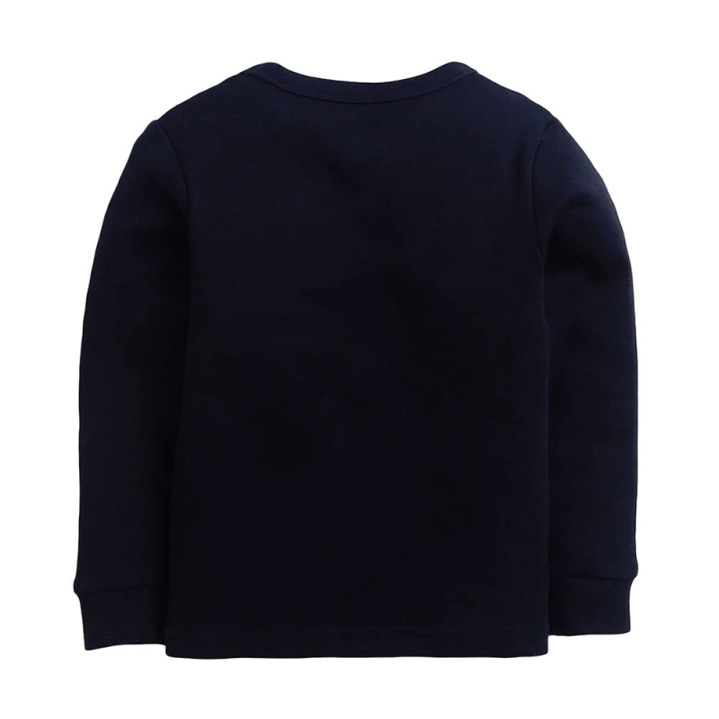 Hopscotch Boys Cotton Solid Text Print Top and Pajama Set in Navy Color