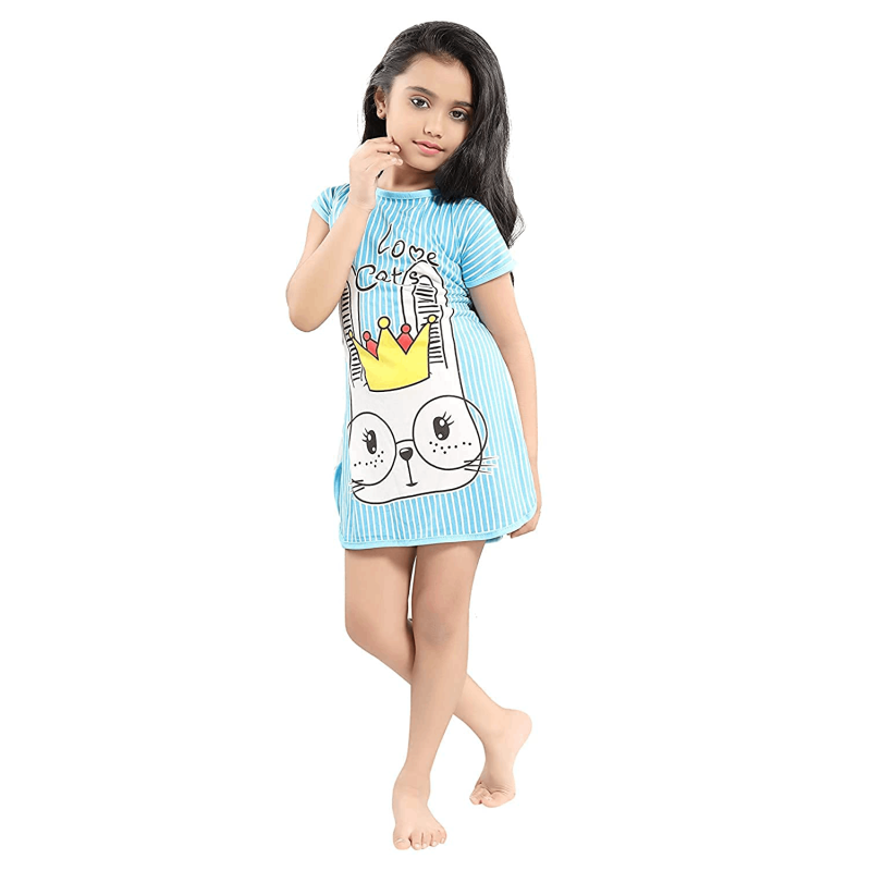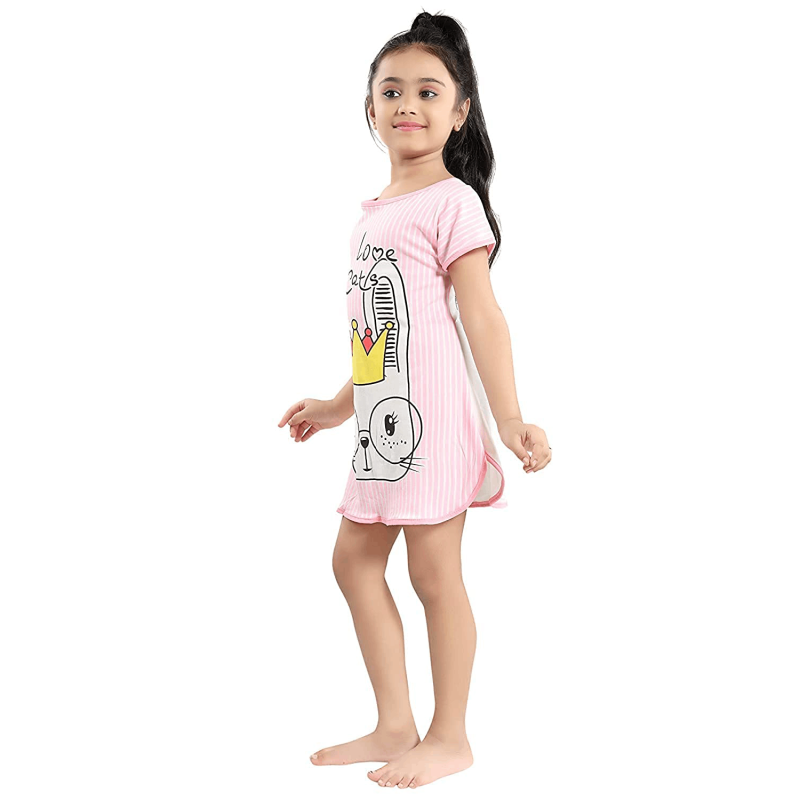 • KidsCartoon-Multi Colour Pack OF 2-Med Kids Hosiery Cartoon Print Nighty/Nightwear/Top Beautiful Baby Shades- Assorted Print (Size 3years to10years)