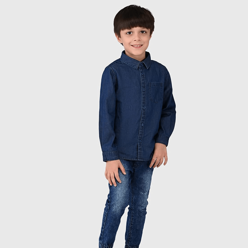 Junior Boys 100% Cotton Navy Blue Solid Regular Fit Full Sleeves Denim Shirt