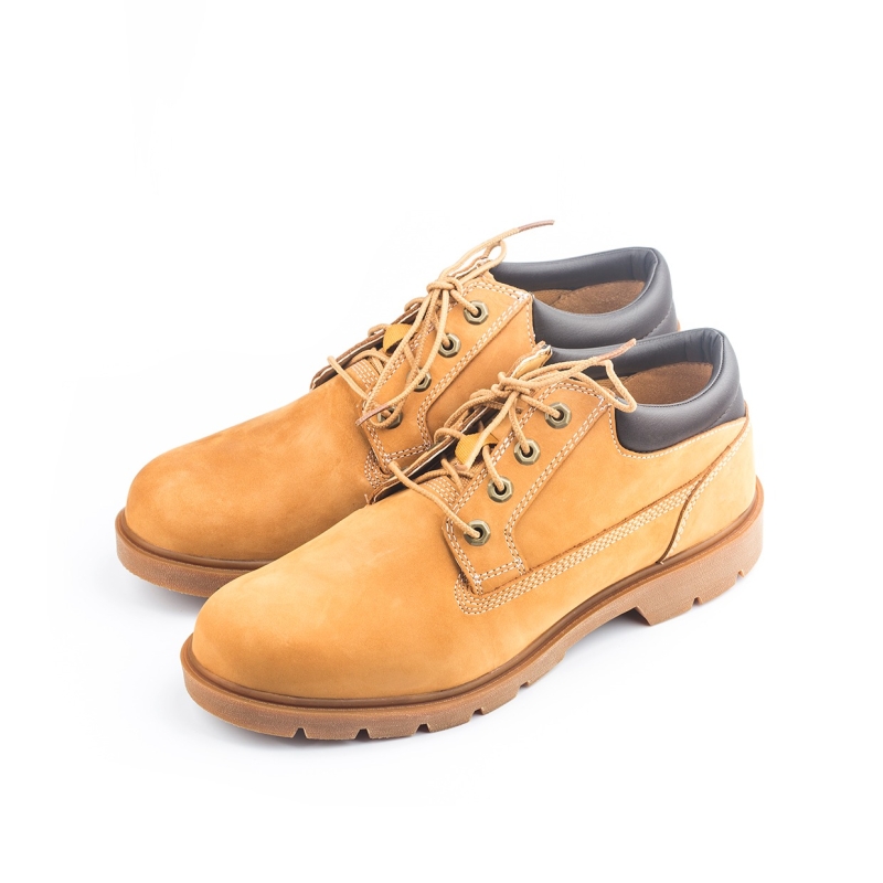 • A pair of round-toe Yellow Boots, has regular styling, lace-up detail