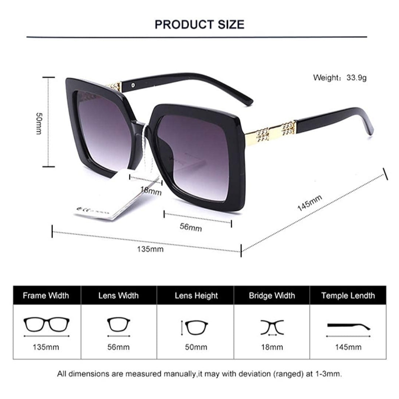 • Elegante Branded Jewel-Detail Frames Square Oversized Sunglasses for Women is suitable for only ladies with full grown faces, not suitable for small faces.