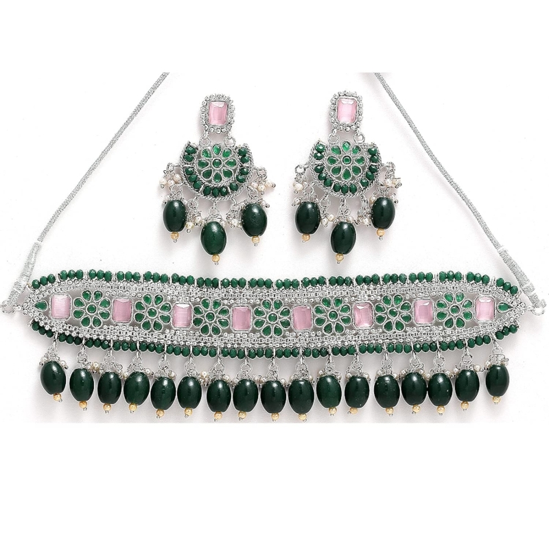 MATERIAL & CRAFTSMANSHIP: Finest quality stones and environmentally friendly non precious Metals are used for making the jewellery set. It is safe for wearing for long hours. Exquisite hand work is required since some crystals are too small to pick by fingers, really hard & time consuming.