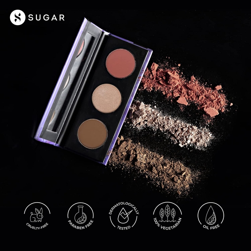 Each of the 3 powders in the SUGAR Contour De Force Face Palette has excellent shading, blends effortlessly with intense color, and lasts for hours without flaking or caking.